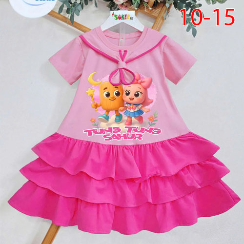 A446556 - Đầm thun may cắt nối 3 tầng cổ thắt caravat ép Tung Tung cute_Size 10-15