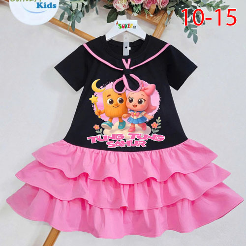 A446559 - Đầm thun may cắt nối 3 tầng cổ thắt caravat ép Tung Tung cute_Size 10-15
