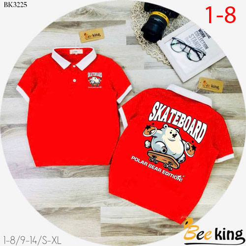 A447893 - Áo bé trai cổ trụ Skate Board gấu thun cotton_Size 1-8