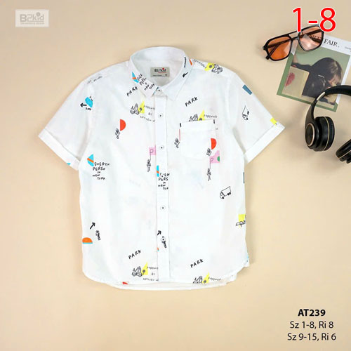 A448545 - Áo sơ mi tay ngắn cotton hoạ tiết thanh lịch_Size 1-8