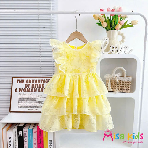 A449444 - Đầm tơ hoa 3 tầng cho bé gái tay tiên Chạy viền họa tiết hoa dễ thương chất tơ hoa mềm_Siz
