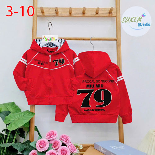 A451225 - Áo khoác miu miu 79 với nón phối vải xinh cho bé iu đắp túi chạy dây viền lé vải da cá cot