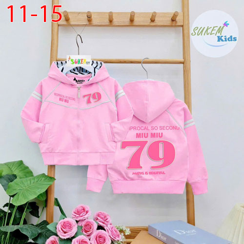 A451230 - Áo khoác miu miu 79 với nón phối vải xinh cho bé iu đắp túi chạy dây viền lé vải da cá cot