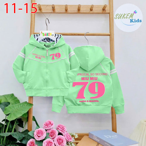 A451234 - Áo khoác miu miu 79 với nón phối vải xinh cho bé iu đắp túi chạy dây viền lé vải da cá cot