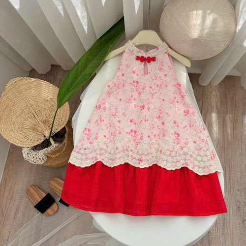 A451689 - Đầm yếm chiêu hoa Cotton thêu hoa nhẹ mát kết hợp cùng voal tơ bồng bềnh_Size 2-10