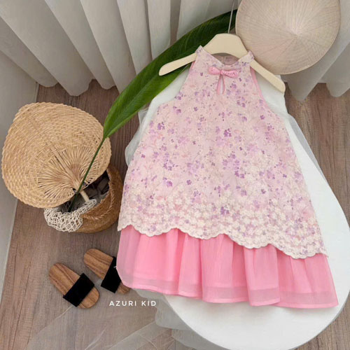 A451690 - Đầm yếm chiêu hoa Cotton thêu hoa nhẹ mát kết hợp cùng voal tơ bồng bềnh_Size 2-10