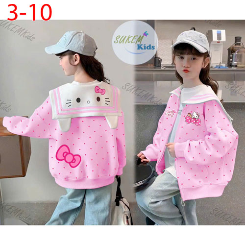 A452469 - Áo khoác Kitty trước sau may cổ thủy thủ đắp tai in Kitty xinh có đắp túi 2 bên_Size 3-10