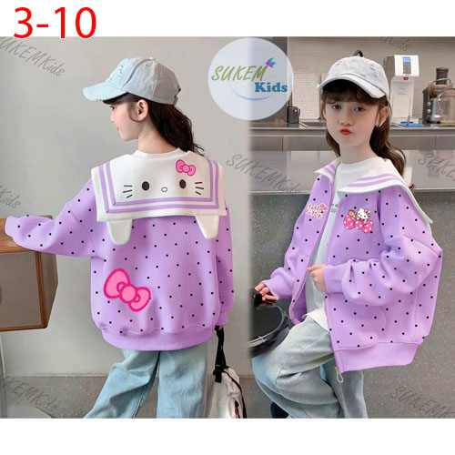 A452471 - Áo khoác Kitty trước sau may cổ thủy thủ đắp tai in Kitty xinh có đắp túi 2 bên_Size 3-10