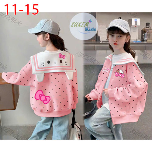 A452475 - Áo khoác Kitty trước sau may cổ thủy thủ đắp tai in Kitty xinh có đắp túi 2 bên_Size 11-15