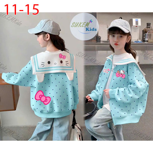 A452477 - Áo khoác Kitty trước sau may cổ thủy thủ đắp tai in Kitty xinh có đắp túi 2 bên_Size 11-15