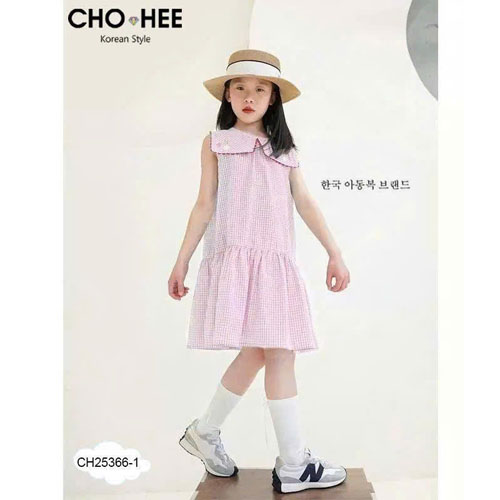 A452899 - Đầm caro xanh Hồng thêu cổ áo hình thêu nhỏ trên cổ áo làm điểm nhấn vải thô cao cấp_Size