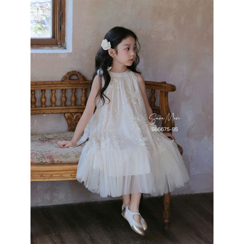 A452901 - Đầm công chúa bồng bềnh đính hoa cắt đính 3D cực xịn_Size 1y-10y