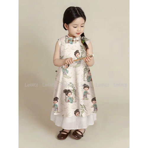 A452972 - Set áo dài trung thu siêu xinh chất liệu đũi 3D mát lịm, hoạ tiết cô tiên_Size 1-10
