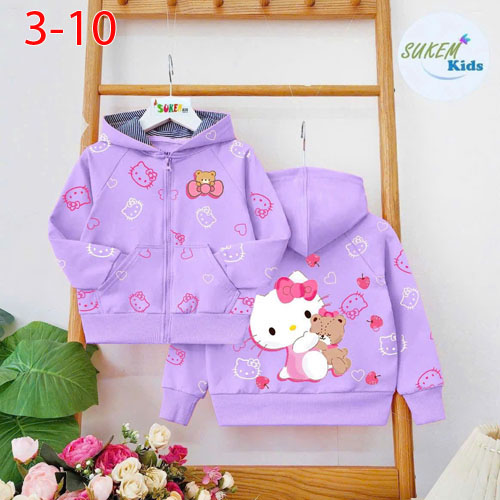 A453734 - Áo khoác Kitty in phun trước sau chất Da cá coton 4c bo tay và lai đặt dệt_Size 3-10