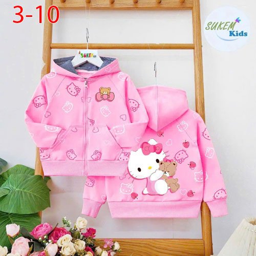 A453735 - Áo khoác Kitty in phun trước sau chất Da cá coton 4c bo tay và lai đặt dệt_Size 3-10