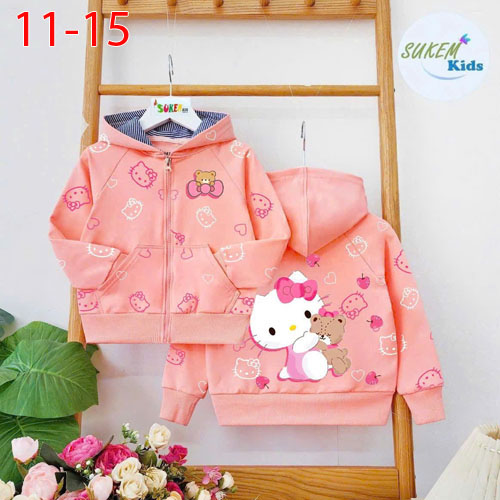 A453738 - Áo khoác Kitty in phun trước sau chất Da cá coton 4c bo tay và lai đặt dệt_Size 11-15