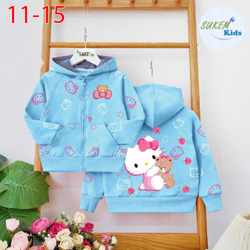 A453739 - Áo khoác Kitty in phun trước sau chất Da cá coton 4c bo tay và lai đặt dệt_Size 11-15