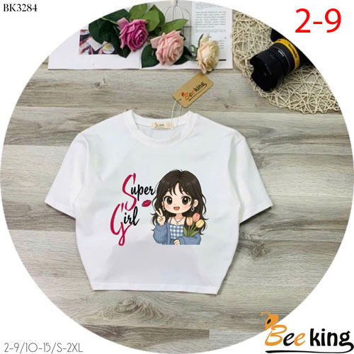 A453788 - Áo form lửng cô gái Super Girl thun cotton 4c_Size 2-9