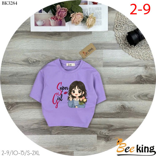 A453790 - Áo form lửng cô gái Super Girl thun cotton 4c_Size 2-9