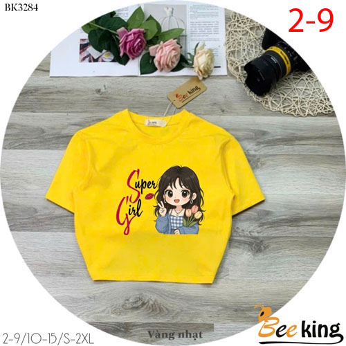 A453791 - Áo form lửng cô gái Super Girl thun cotton 4c_Size 2-9