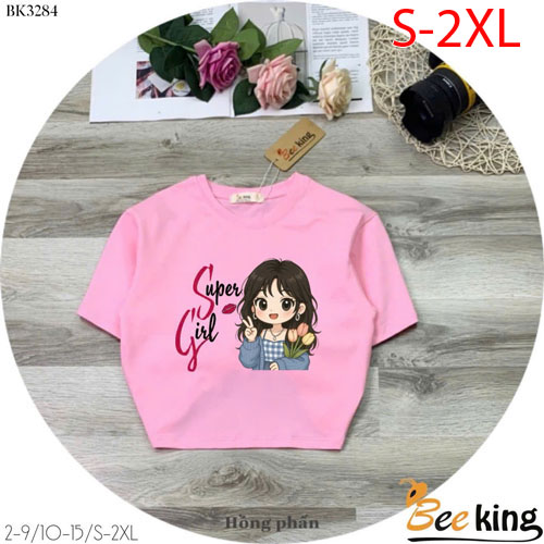 A453817 - Áo form lửng cô gái Super Girl thun cotton 4c_Size S-2XL