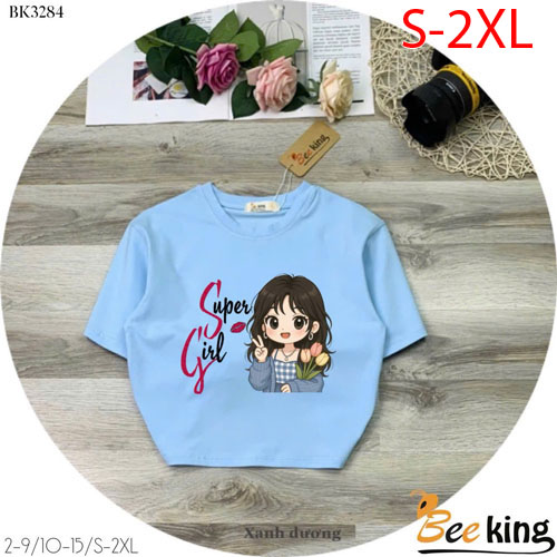 A453822 - Áo form lửng cô gái Super Girl thun cotton 4c_Size S-2XL