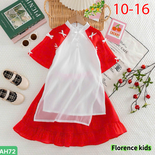 A455688 - Set áo dài cách tân siêu iu cho bé aso vải voan tơ, váy vải lụa mềm mướt_Size 10-16