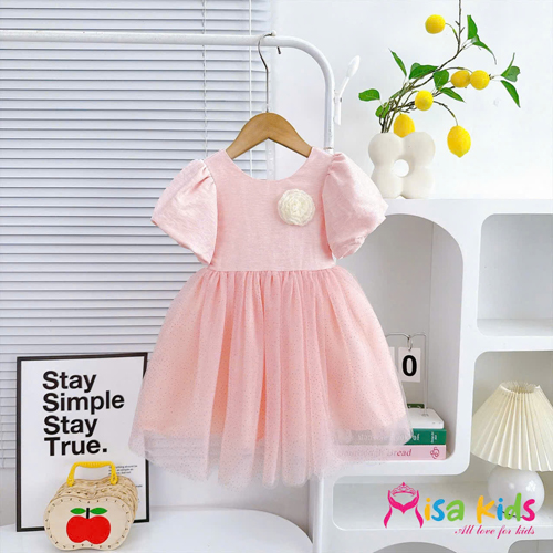 A456593 - Đầm công chúa siêu xinh cho bé gái thân trên tapta xước ánh kim , thân dưới 1 lớp lưới kim