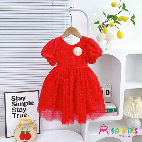 A456594 - Đầm công chúa siêu xinh cho bé gái thân trên tapta xước ánh kim , thân dưới 1 lớp lưới kim