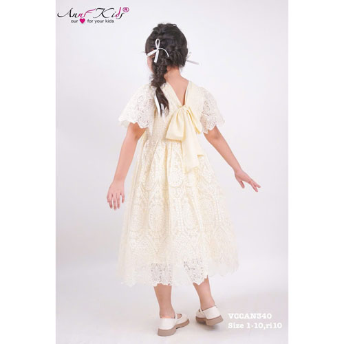 A458145 - Váy ren tiểu thư dáng dài công chúa tay cánh tiên nhẹ nhàng, điểm nơ xinh xắn trước ngực v