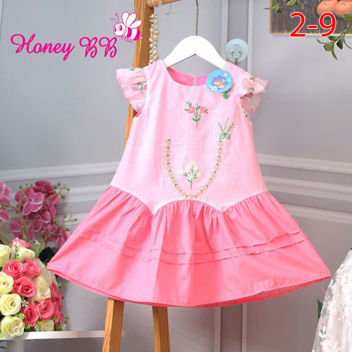 A458723 - Đầm bé gái chất Poi thêu phối thô nến mịn mượt_Size 2-9