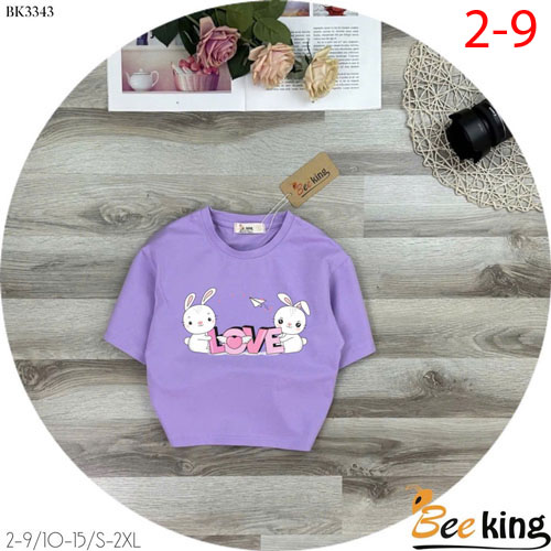 A459045 - Áo form lửng Love 2 thỏ thun cotton 4c_Size 2-9