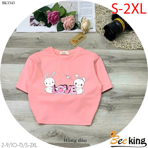 A459073 - Áo form lửng Love 2 thỏ thun cotton 4c_Size S-2XL