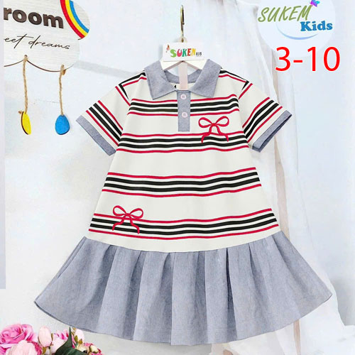 A459167 - Đầm thun Sọc cổ trụ may ngắn tay viền phối thêu Nơ xinh cute tùng may xếp ly_Size 3-10