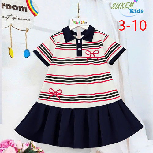 A459169 - Đầm thun Sọc cổ trụ may ngắn tay viền phối thêu Nơ xinh cute tùng may xếp ly_Size 3-10