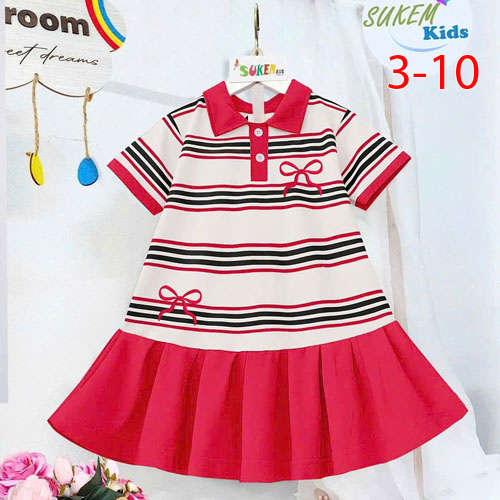 A459171 - Đầm thun Sọc cổ trụ may ngắn tay viền phối thêu Nơ xinh cute tùng may xếp ly_Size 3-10