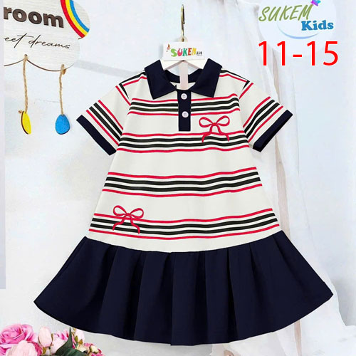 A459178 - (11/10)Đầm thun Sọc cổ trụ may ngắn tay viền phối thêu Nơ xinh cute tùng may xếp ly_Size 1