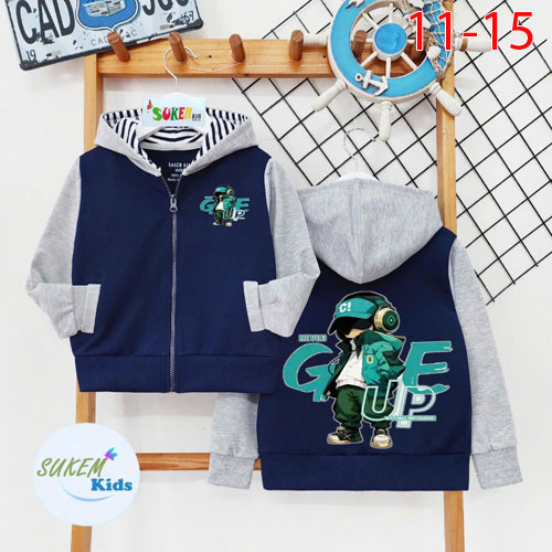 A459798 - (10/10)Áo khoác bé trai phối tay ráp lăng với nón phối mổ túi 2 bên ép hình cậu bé GIVE UP