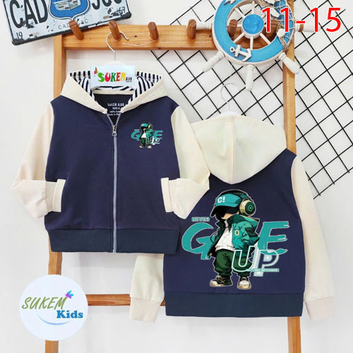 A459802 - (10/10)Áo khoác bé trai phối tay ráp lăng với nón phối mổ túi 2 bên ép hình cậu bé GIVE UP