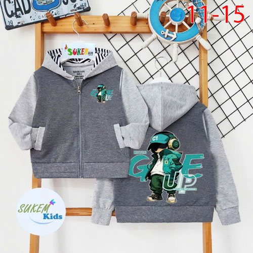 A459803 - (10/10)Áo khoác bé trai phối tay ráp lăng với nón phối mổ túi 2 bên ép hình cậu bé GIVE UP