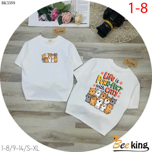 A460117 - Áo form rộng giấu quần nhiều mèo thun cotton 4c_Size 1-8