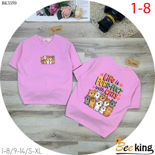 A460119 - Áo form rộng giấu quần nhiều mèo thun cotton 4c_Size 1-8