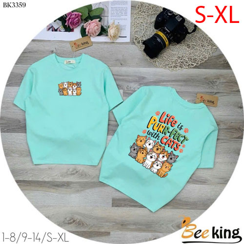A460145 - Áo form rộng giấu quần nhiều mèo thun cotton 4c_Size S-XL