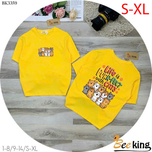 A460147 - Áo form rộng giấu quần nhiều mèo thun cotton 4c_Size S-XL
