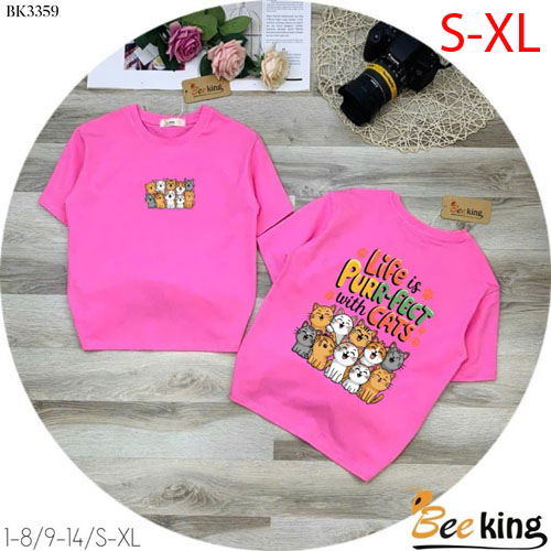 A460149 - Áo form rộng giấu quần nhiều mèo thun cotton 4c_Size S-XL