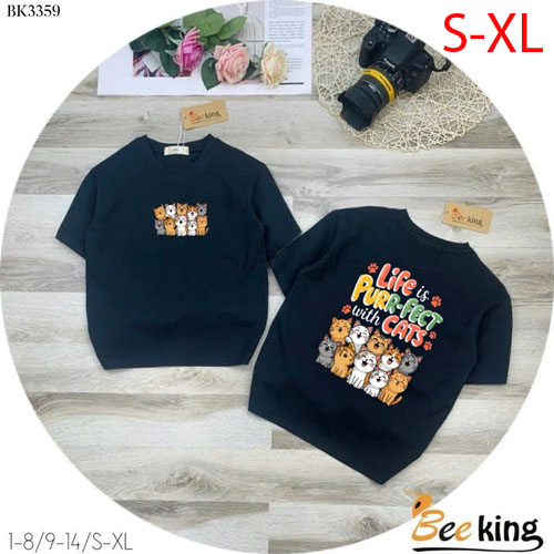 A460150 - Áo form rộng giấu quần nhiều mèo thun cotton 4c_Size S-XL