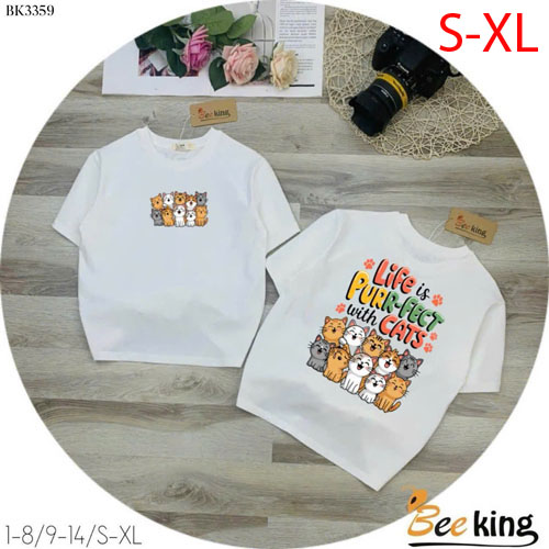 A460154 - Áo form rộng giấu quần nhiều mèo thun cotton 4c_Size S-XL