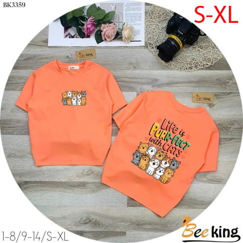 A460155 - Áo form rộng giấu quần nhiều mèo thun cotton 4c_Size S-XL