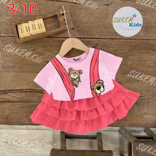 A460341 - Sét váy bánh bèo áo ngắn tay in cham gấu siêu cute chân váy cắt may 3 tầng nhún xòe_Size 3