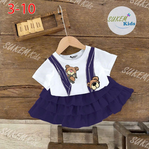 A460343 - Sét váy bánh bèo áo ngắn tay in cham gấu siêu cute chân váy cắt may 3 tầng nhún xòe_Size 3